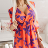 Paket beinhaltet: 1 * Damen-Midikleid mit Blumendruck und V-Ausschnitt