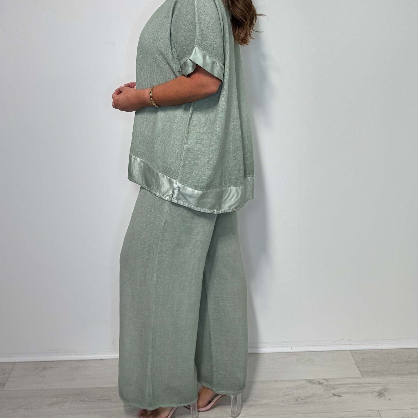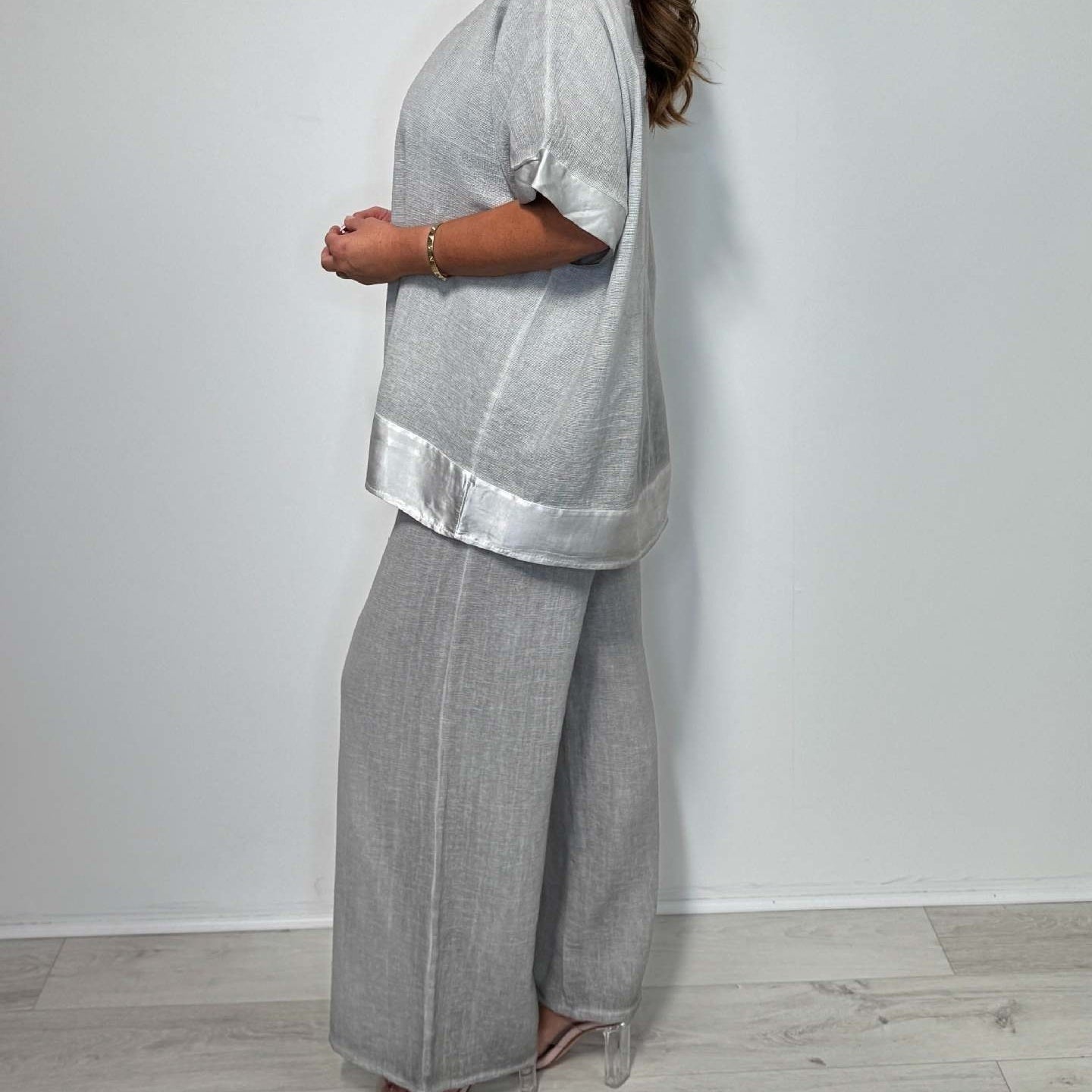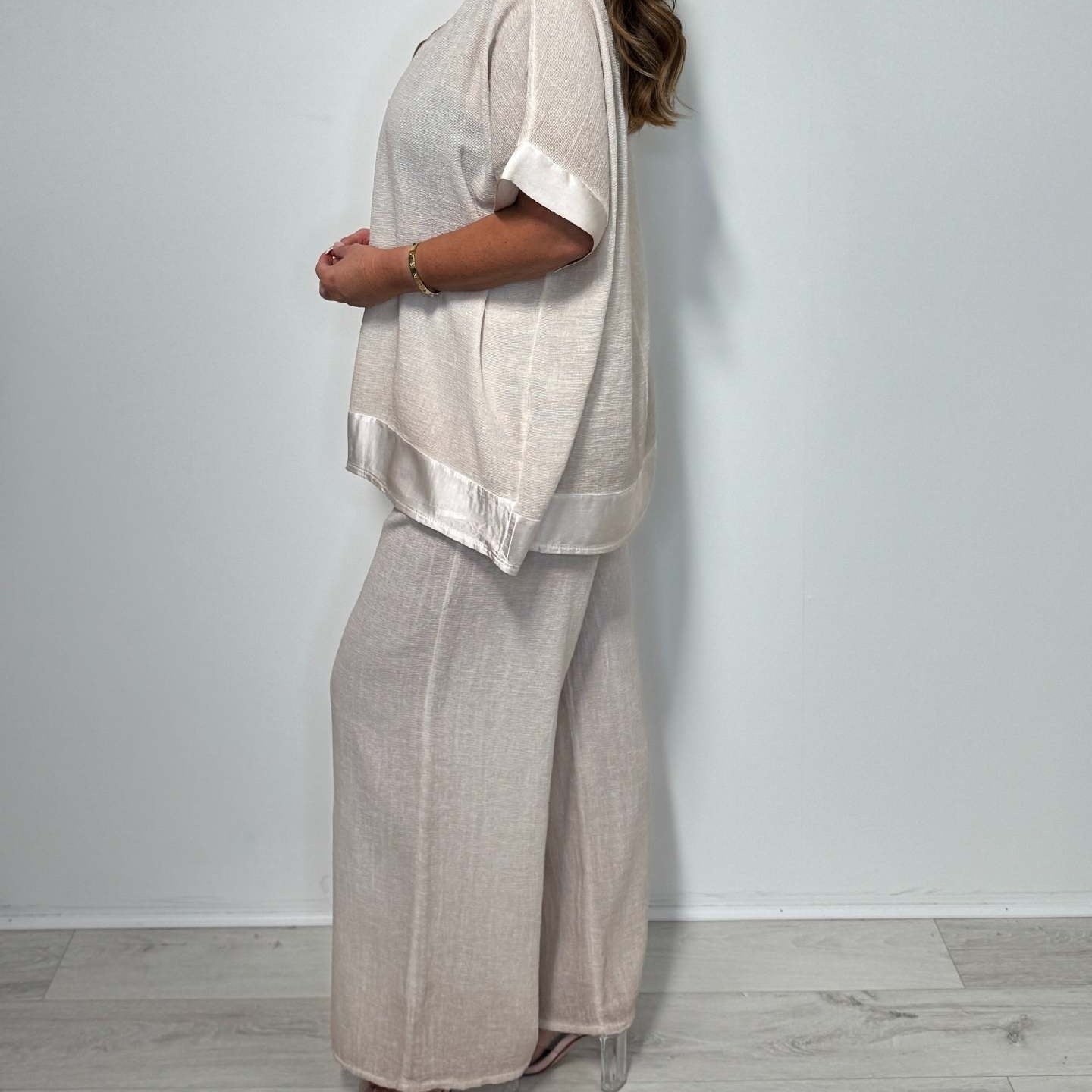 MODERNER LĂSSIGER STIL â Das V-Ausschnitt-Top verlĂ€ngert Ihre Silhouette, wĂ€hrend die flieĂenden, weiten Hosenbeine mĂŒhelos Bewegung verleihen. Kurze Ărmel und ein taillierter Schnitt bieten eine Balance zwischen Komfort und subtiler Struktur. Kombinieren Sie es mit High Heels fĂŒr einen Brunch oder mit Sneakers fĂŒr Besorgungen â Vielseitigkeit trifft auf schlichte Eleganz.