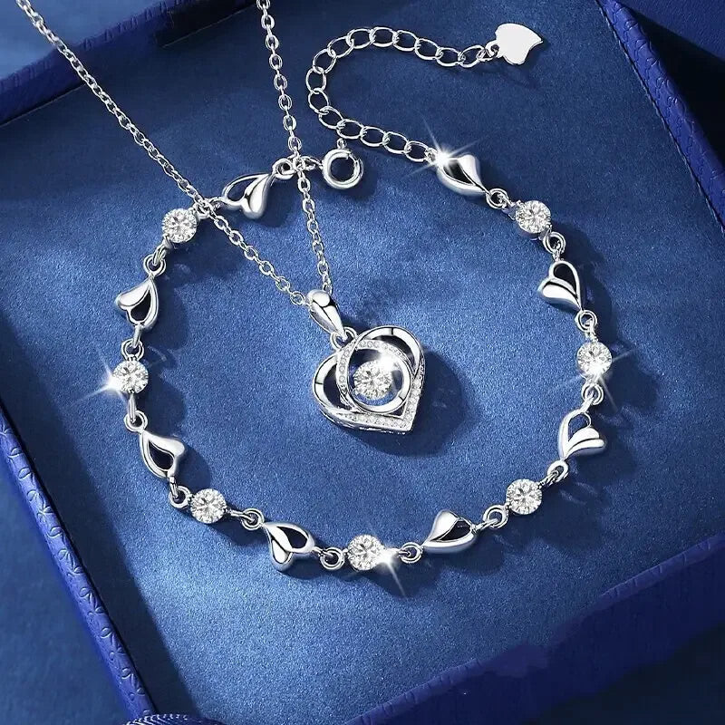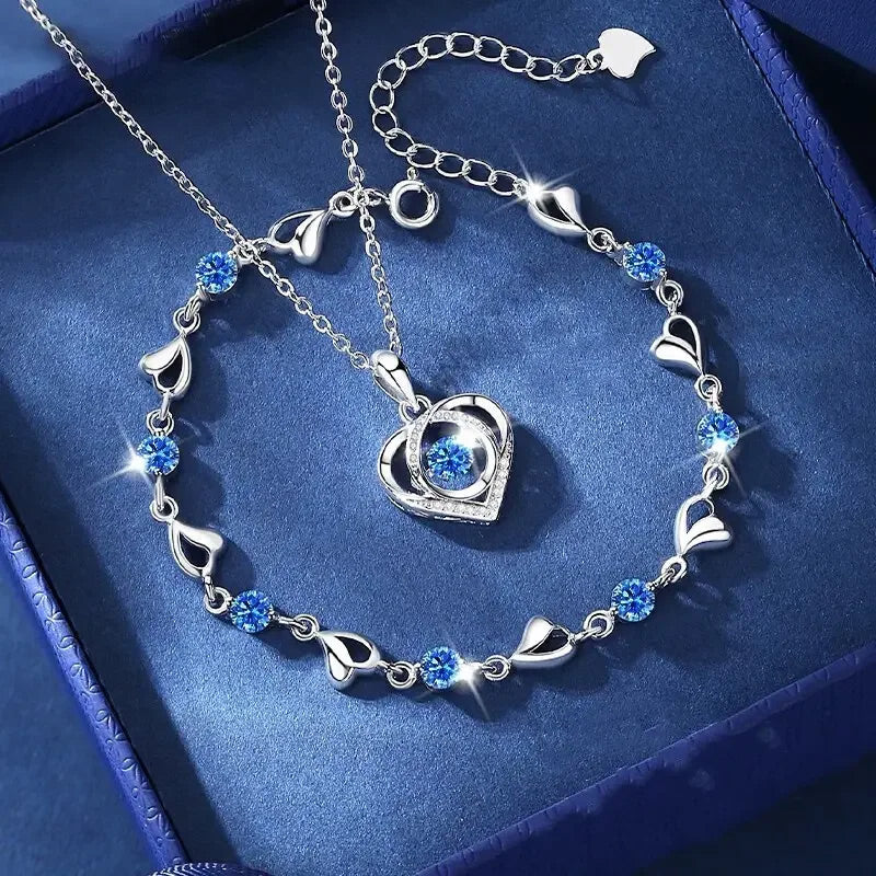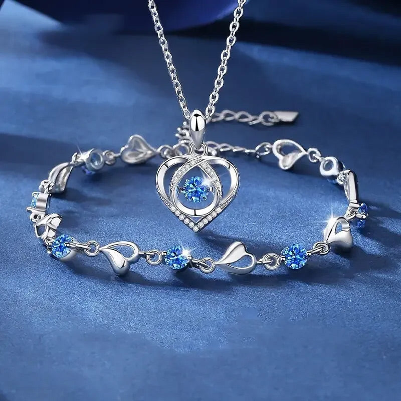 đ[Herz des Ozeans] SĂŒĂ funkelndes Zirkonia Armband & Halskette Setđ