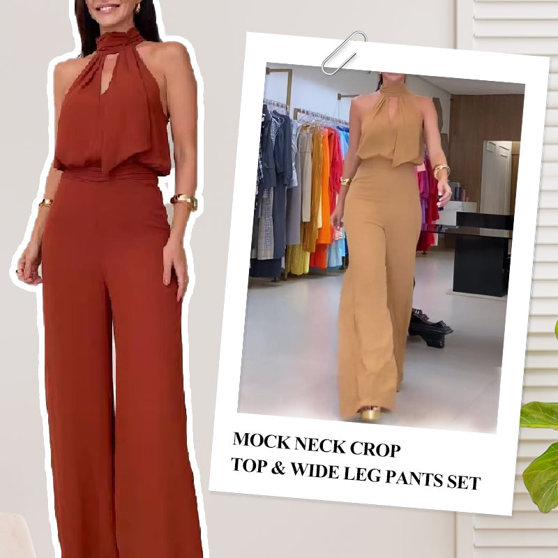 Paket beinhaltet: 1 * Mock Neck Crop Top & Wide Leg Pants Set