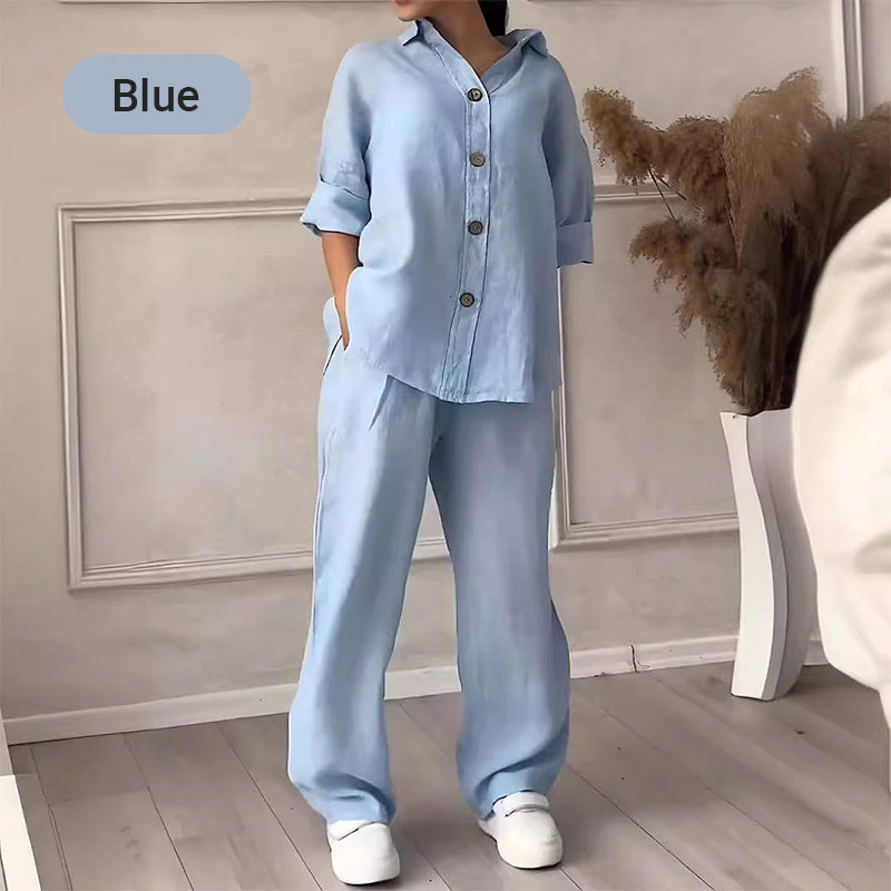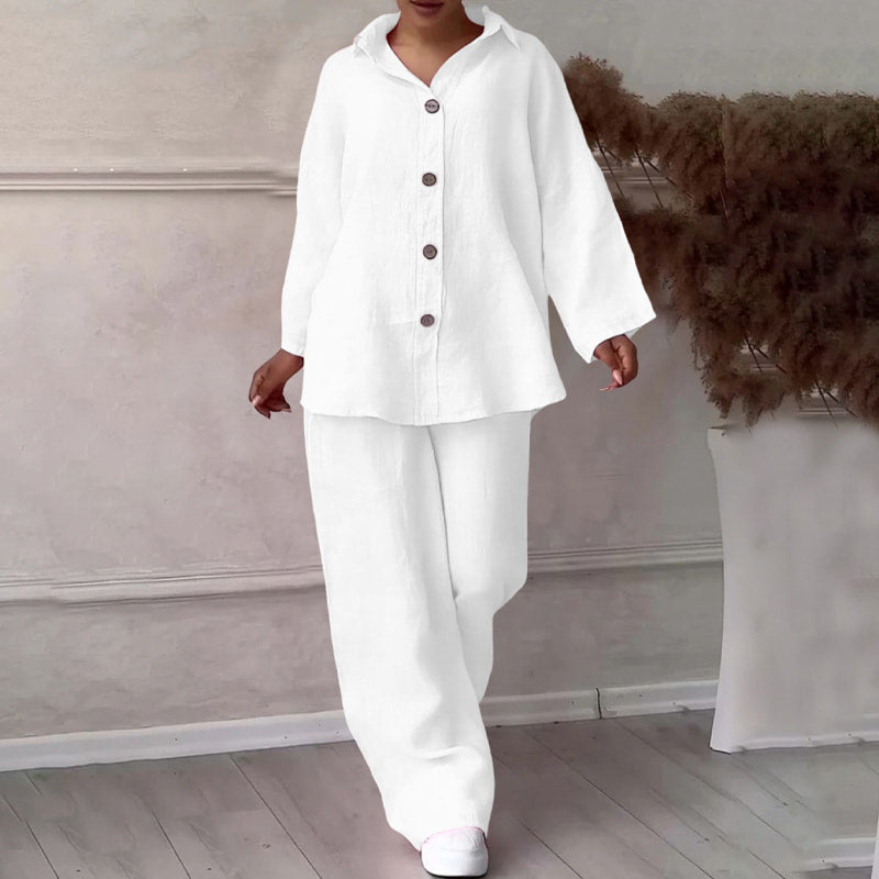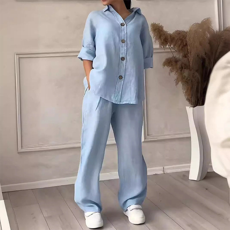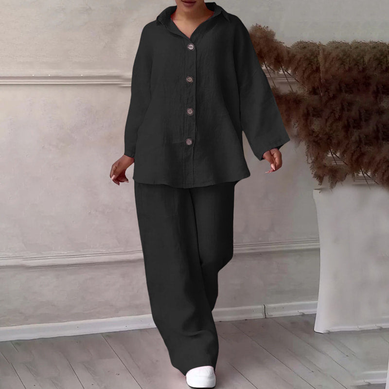 KLASSISCHES SET: Dieses zweiteilige Set besteht aus einem klassischen Button-Down-Hemd und einer locker sitzenden Hose und eignet sich perfekt für legere Ausflüge und halbformelle Anlässe. Das Hemd hat einen knackigen Kragen und ein geknöpftes Design, während die Hose bequem sitzt.