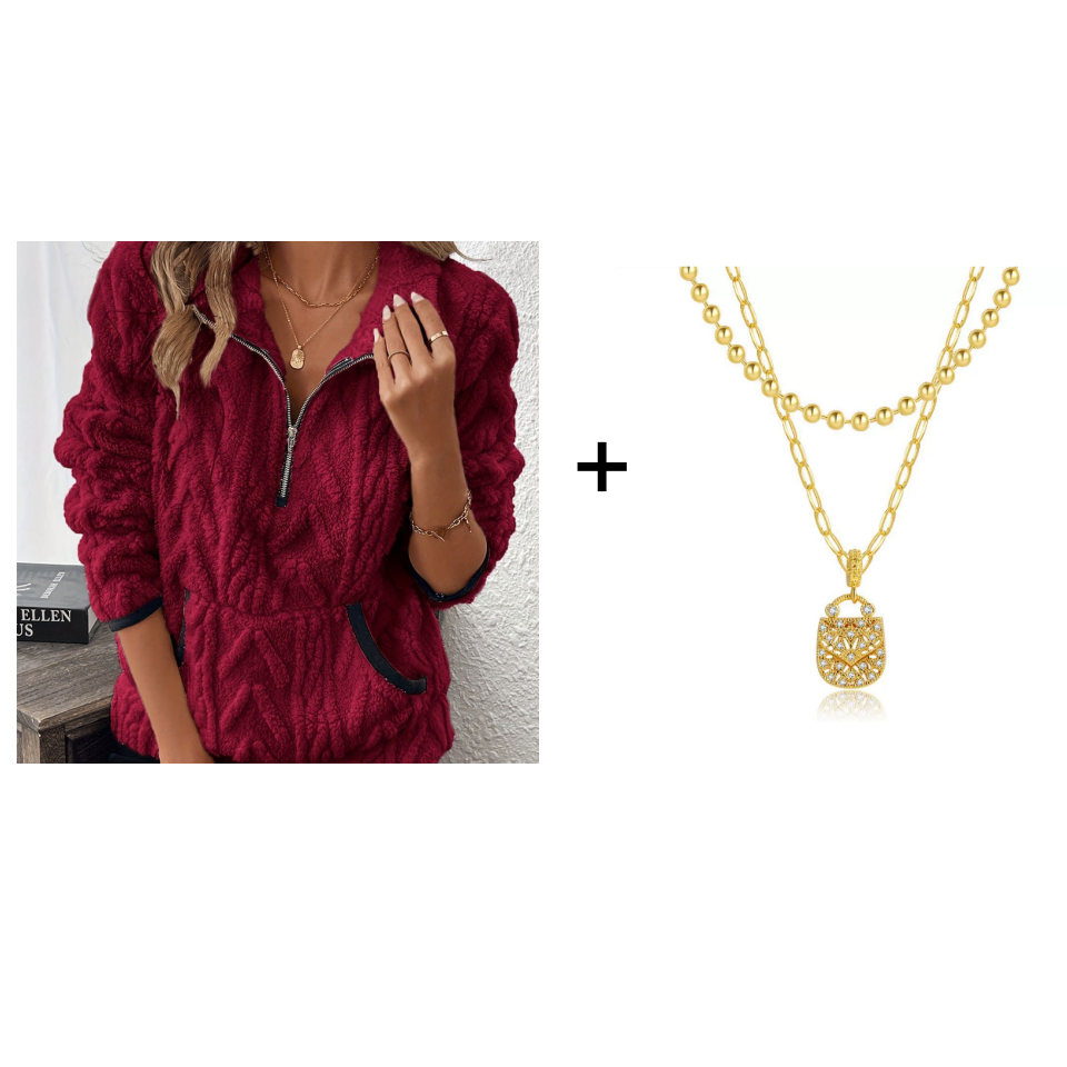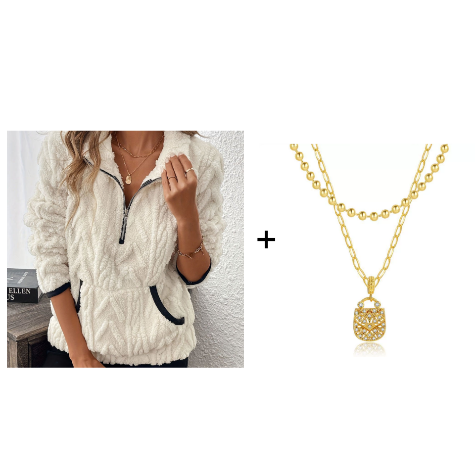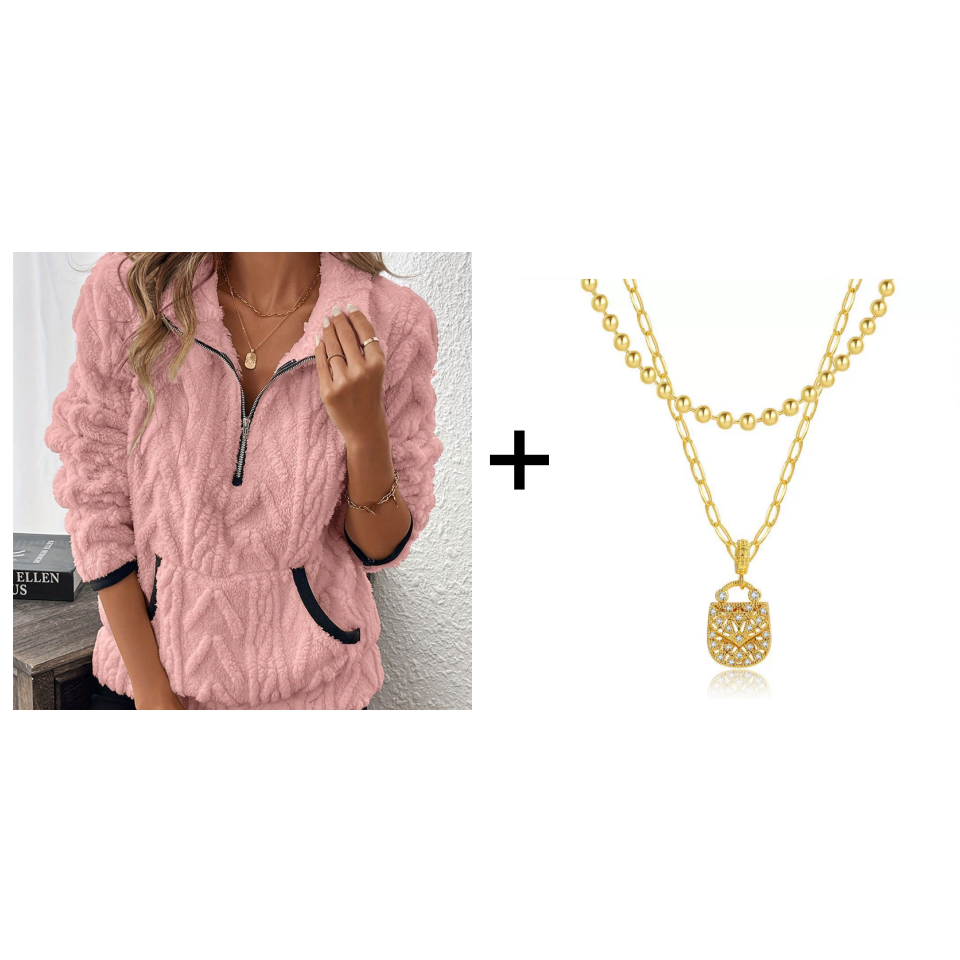Flauschiges Sweatshirt mit halbem Reißverschluss 🍂 | Wolkenweich + geräumige Taschen – Bequem für den Alltag/die Lounge