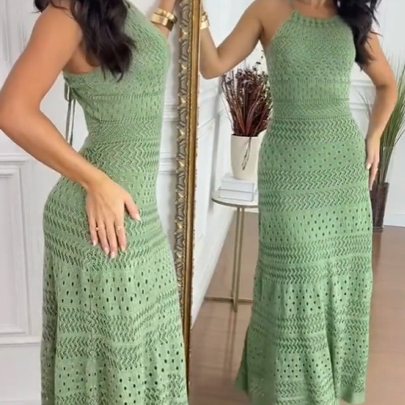 🔥HEISSER VERKAUF 40% Rabatt🔥 Elegantes Neckholderkleid mit Hohlsaum für Damen