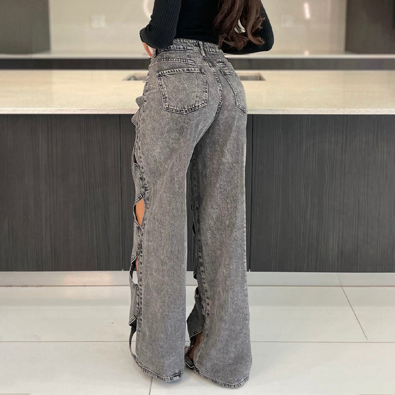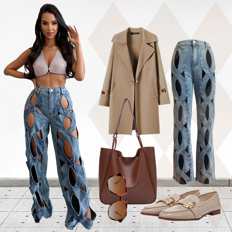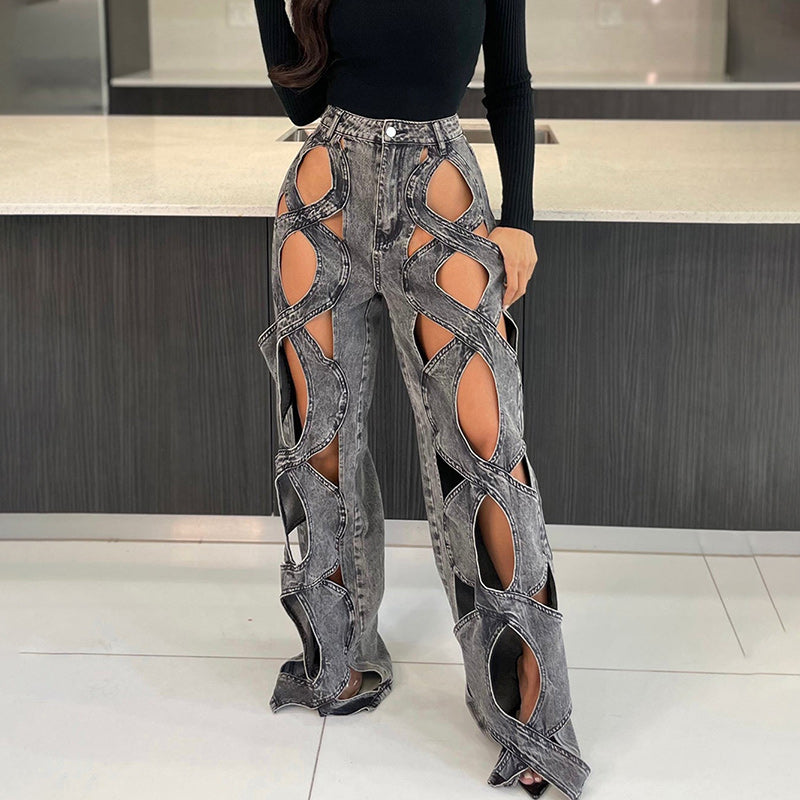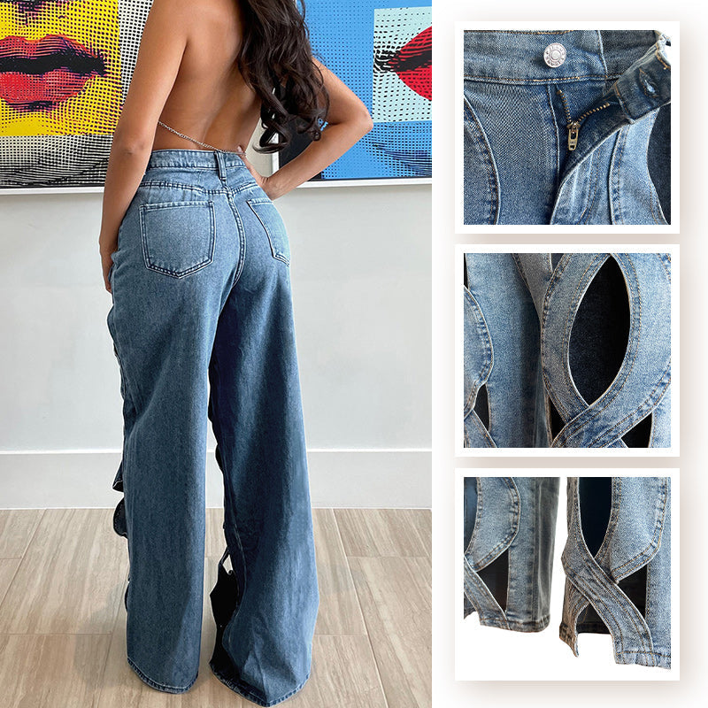 EINZIGARTIGES AUSHÖHLENDES DESIGN: Diese Jeanshose zeichnet sich durch ein auffälliges Aushöhlungsdesign aus, das einen mutigen, trendigen Stil verleiht. Die Aussparungsdetails unterstreichen ihren modernen, kantigen Look und sorgen für einen modischen Auftritt.