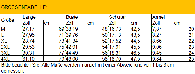 - Aufgrund der manuellen Messung kann es zu Abweichungen von 2â3 cm kommen. Bitte stellen Sie vor dem Kauf sicher, dass Sie nichts dagegen haben.