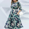 Modisches bedrucktes langes Kleid mit Rundhalsausschnitt und Gürtel