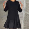Lockeres, plissiertes, elegantes schwarzes Kleid mit siebenzackigen Ärmeln