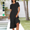 Paket enthält: 1 * Damen Rundhals Plissee Uni Farbe Kleid