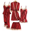 des fĂŒnfteiligen Sets: Dieses fĂŒnfteilige NachtwĂ€scheset aus Eisseide fĂŒr Damen besteht aus fĂŒnf Teilen, darunter einem Unterhemd, Shorts, langen Hosen, einem Kleid im Nachthemdstil und einem Bademantel mit GĂŒrtel. Die fĂŒnf Teile ergeben ein komplettes NachtwĂ€sche-Ensemble, das bequem und stilvoll ist. Der Bademantel kann als Ă€uĂere Schicht getragen werden, wĂ€hrend die anderen Teile einzeln oder zusammen getragen werden können, um einen kompletten Look zu erzielen.