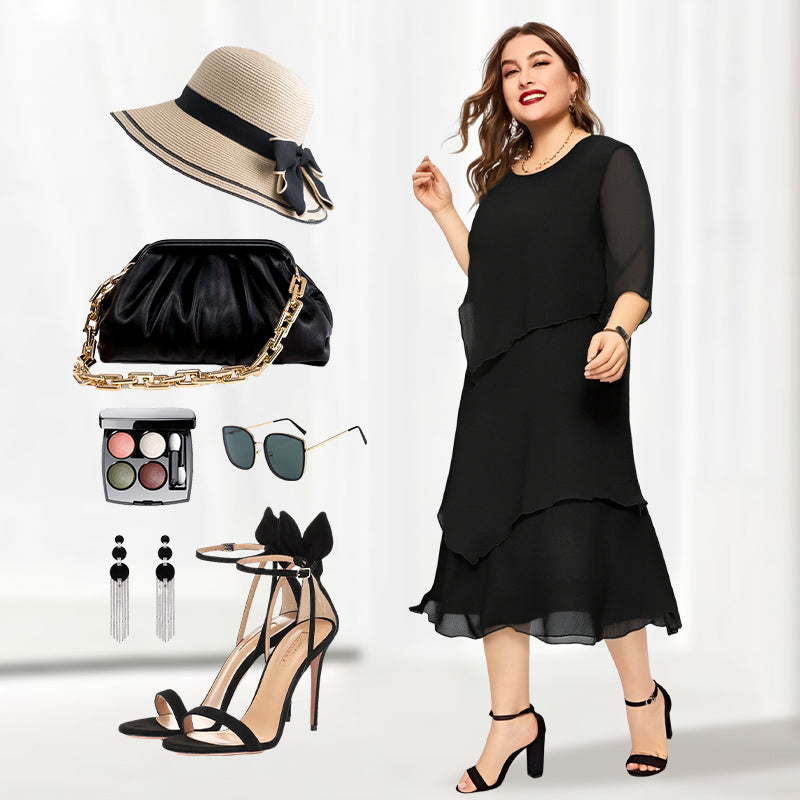 Paket beinhaltet: 1 * Plus Size Lagen-Midikleid