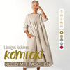 đLĂ€ssiges, lockeres, einfarbiges Damenkleid mit Rundhalsausschnitt, 3/4-Ărmeln und Taschen
