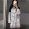 Dieses atemberaubende, schimmernde, merzerisierte Kleid hat einen runden Ausschnitt und eine lockere, gerade Passform, passt zu allen Figuren und bietet eine Mischung aus Eleganz und Komfort. Der Stoff ist weich und glatt und sorgt für ein luxuriöses Gefühl auf der Haut.