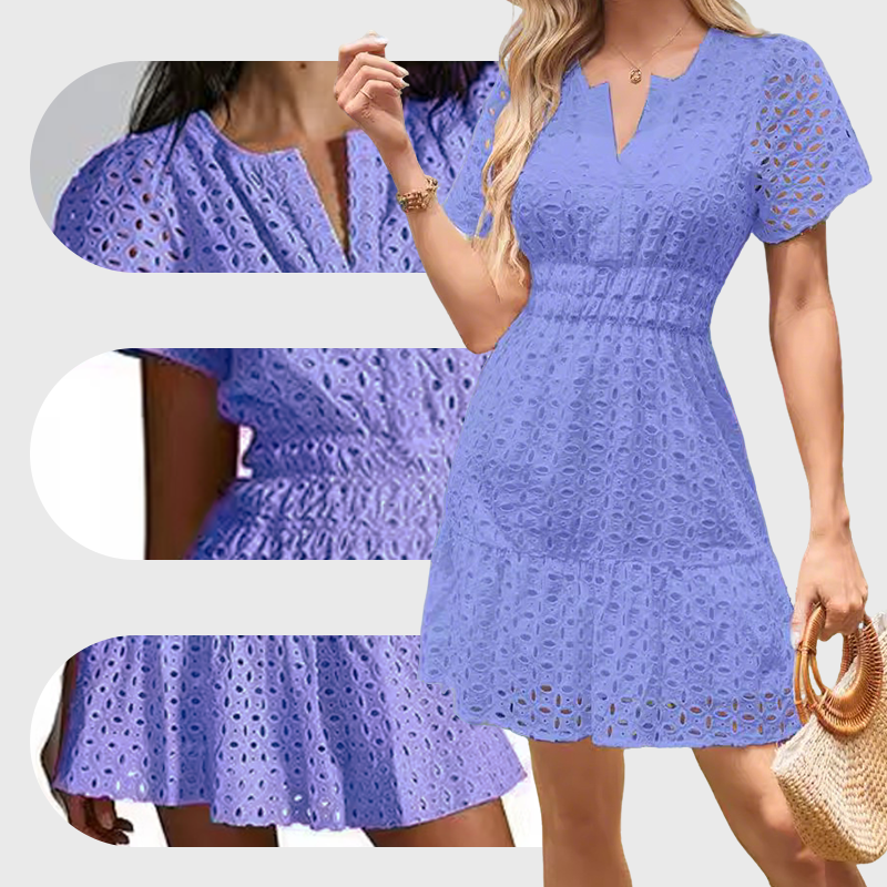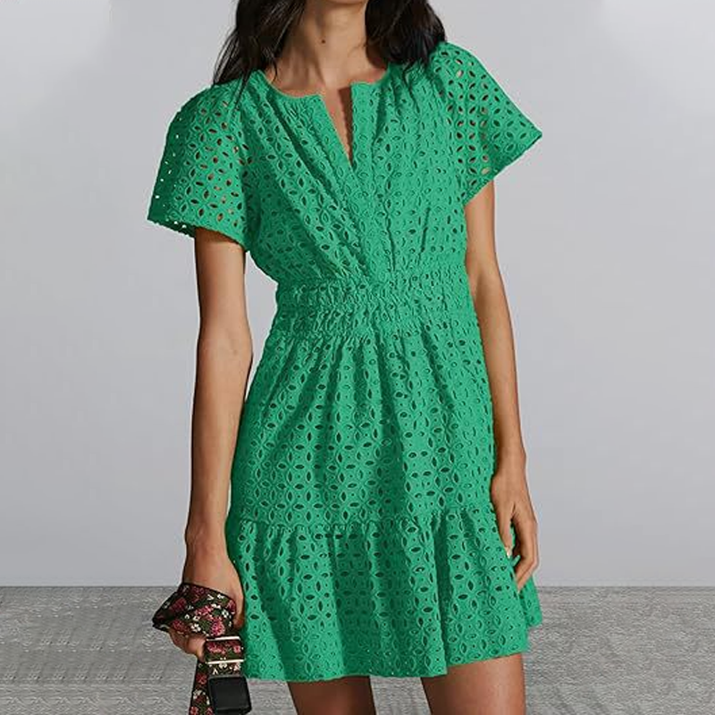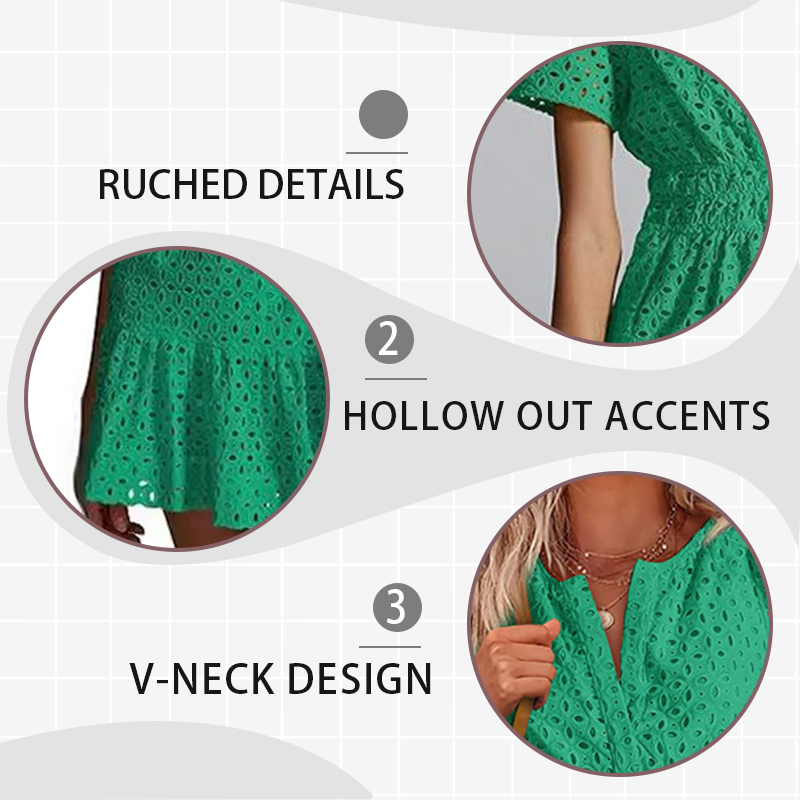 AUSHÖHLEN-AKZENTE: Elegante, ausgehöhlte Akzente verleihen dem Kleid einen trendigen Touch und heben es von anderen Kleidern ab. Diese einzigartigen Details bieten sowohl Stil als auch Atmungsaktivität – perfekt für wärmeres Wetter.