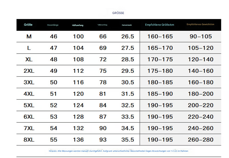 Die Größentabelle von Shorts aus Eisseide entspricht dem EU-Standard. Die lockere Passform bietet ausreichend Bewegungsfreiheit für Gesäß und Oberschenkel.