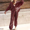 Lässiges zweiteiliges Outfit für Damen aus übergroßer Strickjacke und Baggy-Hose mit hoher Taille