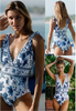 🔥49% Rabatt💝 Einteiliger Badeanzug und Rock mit V-Ausschnitt, Schnürung und Aufdruck