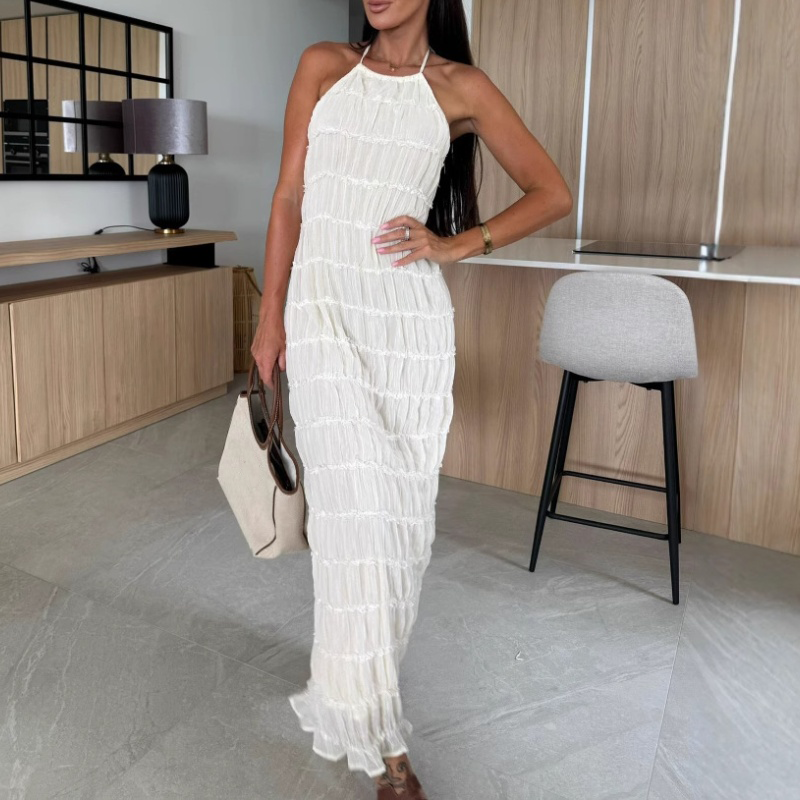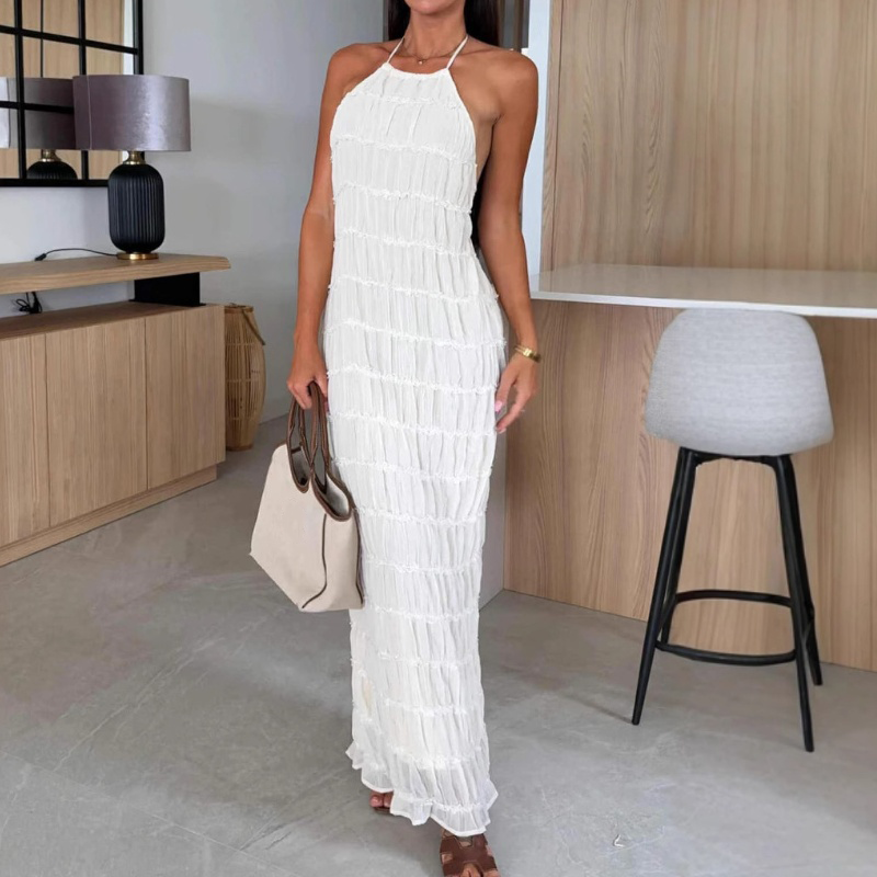 Sexy plissiertes Neckholder-Maxikleid mit rückenfreiem Schnitt
