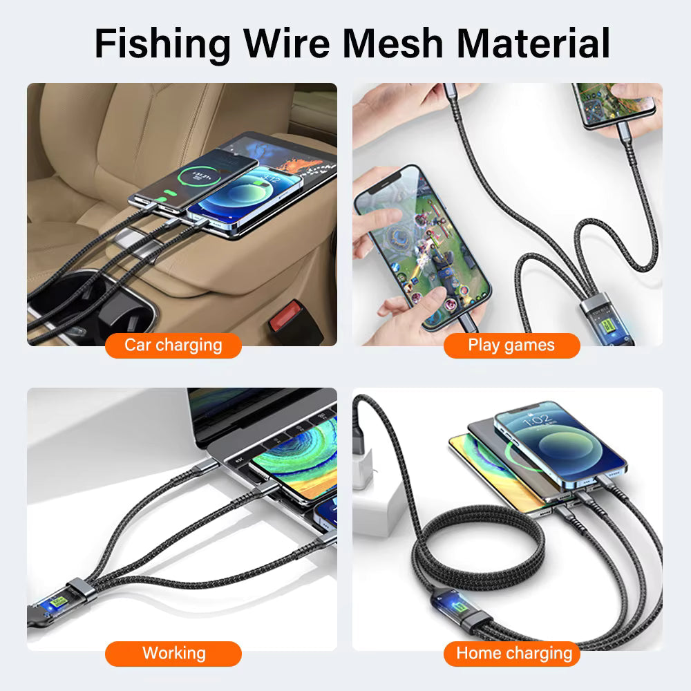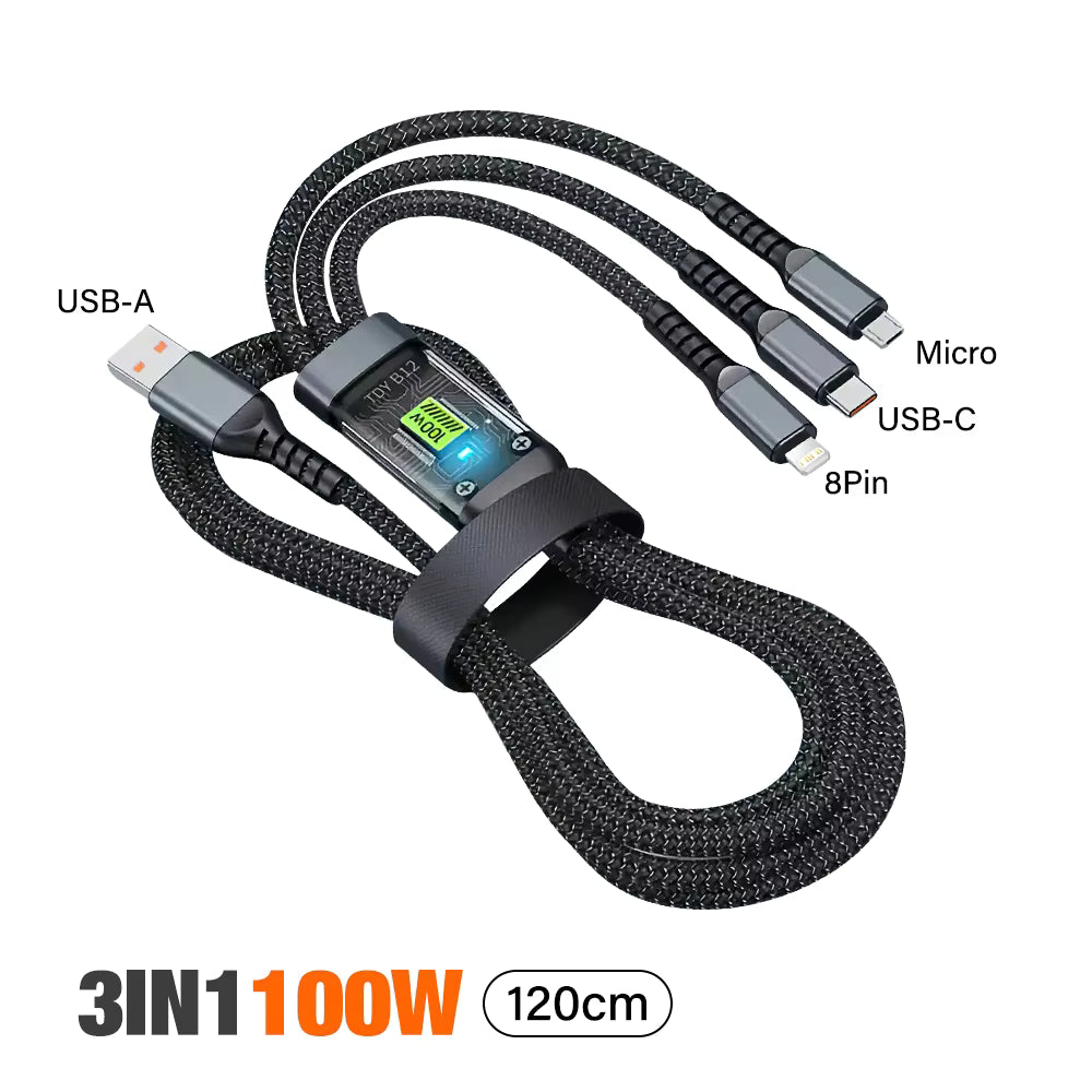 ⚡️✨ Transparentes 3-in-1 Schnellladekabel ✨⚡️ mit LED-Licht – robuster Alltagsbegleiter für schnelle, zuverlässige Energie.
